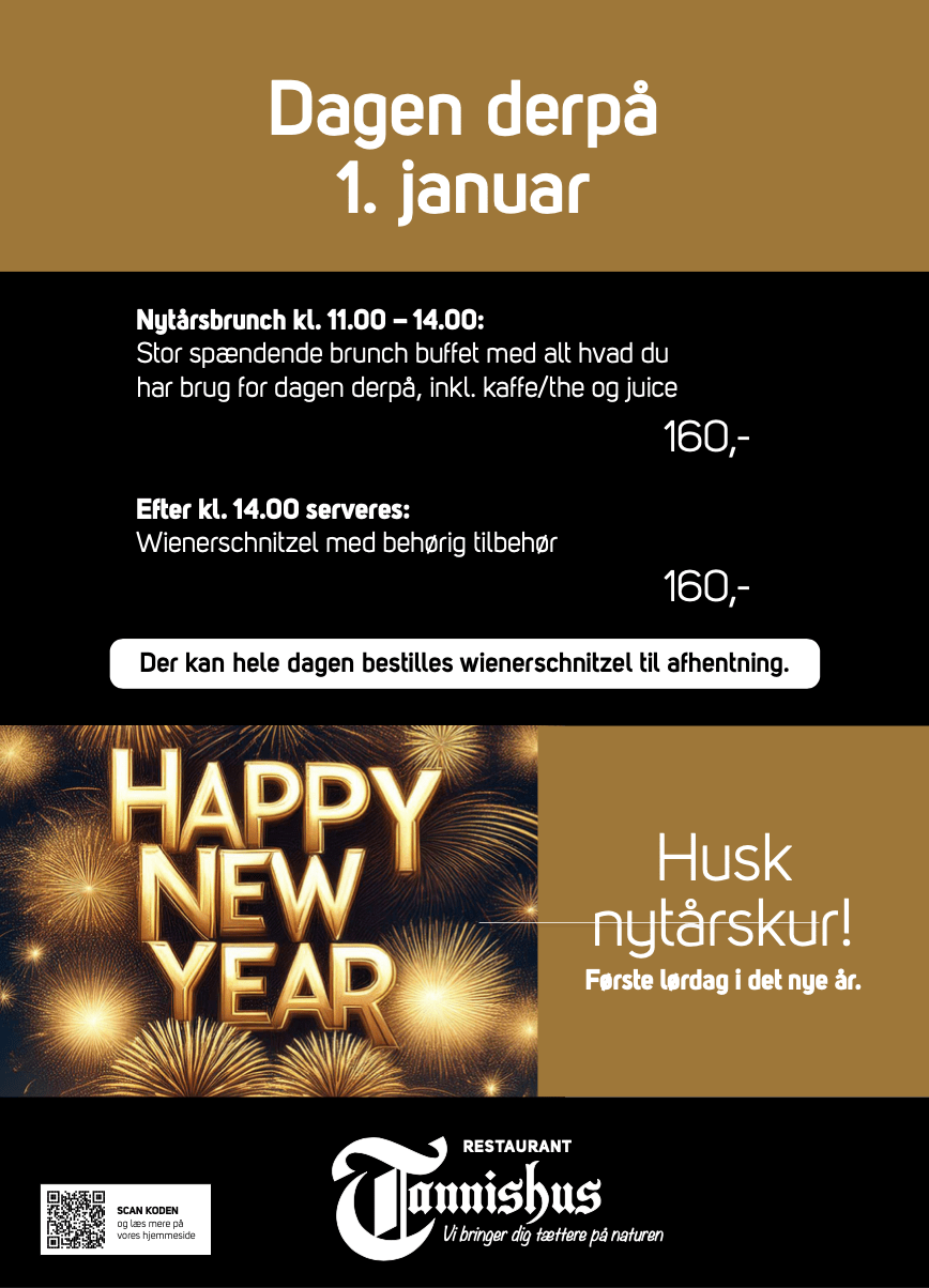 Nytårsbrunch 1 januar kl. 11.00 – 14.00 160,-