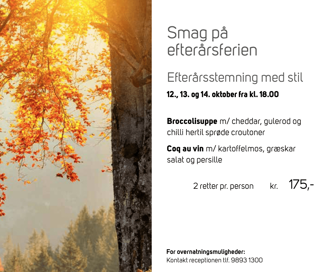 For overnatningsmuligheder: Kontakt receptionen tlf. 9893 1300