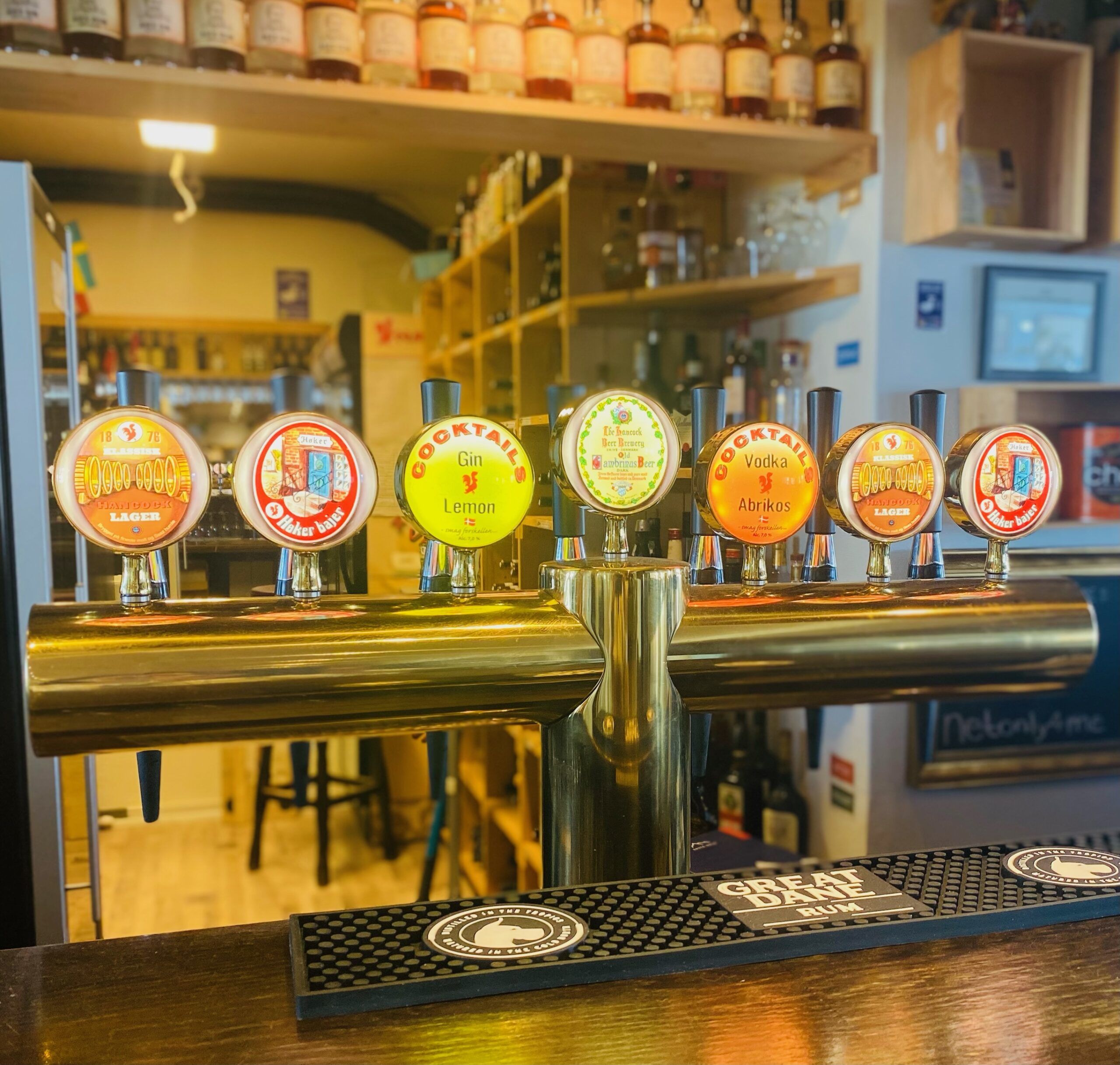 Høker Bajer pilsner Stor 80,- Mellem 65,- Lille 45,-
